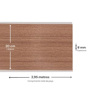 A embalagem contém 10 peças, cada uma com 2,95 metros de comprimento, 20 centímetros de largura e 8 milímetros de espessura. Totalizando 5,9 metros quadrados.