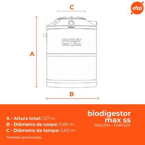 A Fossa Séptica Biodigestor Max SS 700L/dia Fortlev é um sistema compacto e eficiente para tratamento de esgoto. O modelo atende residências com até 4 pessoas ou comércios com até 14 pessoas. Pode ser instalado tanto enterrado quanto na superfície, oferecendo praticidade e economia.