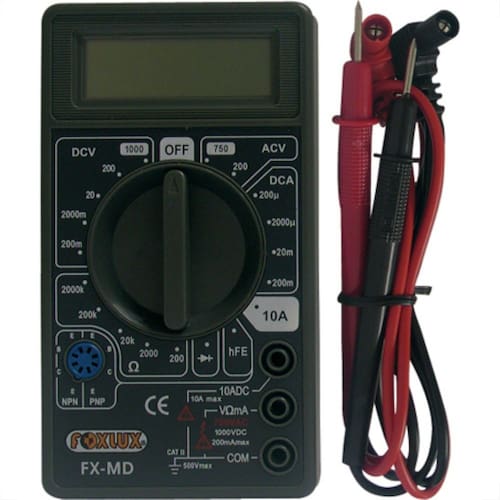 O Multímetro Digital Foxlux (Modelo Fx-MD) é uma ferramenta essencial para eletricistas e entusiastas de eletrônica. Com funções de medição de tensão, corrente e resistência, oferece precisão e facilidade de uso. Seu display LCD facilita a leitura dos resultados, enquanto o design compacto garante portabilidade. Ideal para diagnósticos e reparos, o Foxlux Fx-MD é a escolha perfeita para quem busca qualidade e confiabilidade em medições elétricas.EspecificaçõesDetalhes do Produto: Marca: FOXLUX ELETRICAEmbalagem: 1 UnidadeCódigo da Loja: 30028448Código universal de produto: 7898105772747Classificação Fiscal: 90303100GTIN: 7898105772747Garantia legal: 3 Meses Marca: FOXLUX ELETRICA