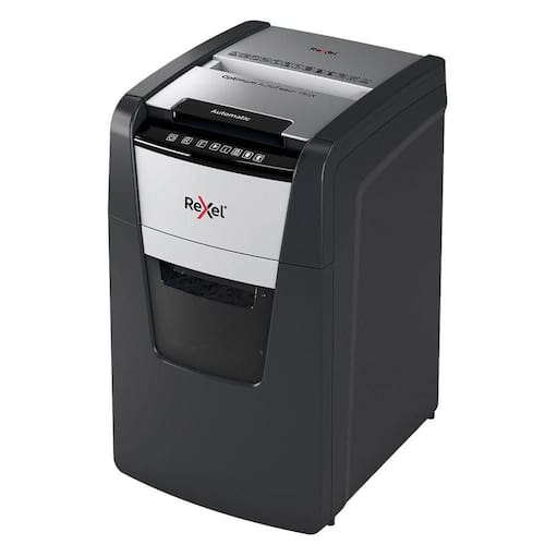 O manuseio da 150X é simples e prático. Basta inserir o que deseja fragmentar em um dos compartimentos indicados e pronto. No modo automático Stack-and-Shred, a máquina consegue triturar até 150 folhas no tamanho A4. Já no sistema manual, é permitido inserir 8 por vez. Outra excelente função do modelo é a possibilidade de destruir cartões magnéticos e folhas que contenham clipes ou grampos.