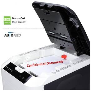 Recursos de trituração automática para eficiência ideal, trituração automática máxima de 200 folhas e capacidade de trituração manual de 10 folhas. Tensão: 120 volts 54,43 kgf, cm. Frequência: 60 Hz. O microcorte transforma o papel em pequenos pedaços semelhantes a confetes medindo 2 por atende aos padrões P 5 de alto nível de segurança tritura 10 vezes menor que os trituradores de corte transversal padrão. Aproximadamente 2.592 partículas por papel tamanho carta. Tempo de execução contínua ininterrupta de 60 minutos Anti encravamento Retrocesso automático para eliminar encravamentos de papel. Operação ultrassilenciosa. Auto Power Sleep para economia de energia e segurança. Lixeira removível de 32,18 litros com luzes indicadoras de LED Status de espera, superaquecimento, compartimento cheio, sobrecarga, porta aberta.