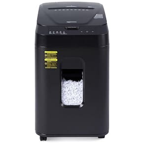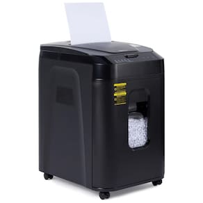 Destrói até 150 folhas alimentação automática, carregado em bandeja de papel de 20 por 27 centímetros e até 10 folhas alimentadas manualmente de papel de ligação de 20 libras por vez não é necessário remover grampos ou pequenos clipes de papel também destrói cartões de crédito.