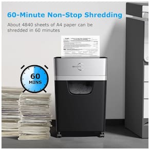Tempo de execução de 60 minutos: Adotando sistema de resfriamento patenteado, operação contínua por 60 minutos sem parar, o que pode destruir cerca de 4840 folhas de papel. Triturador de papel profissional para uso em escritórios e escritórios domésticos.