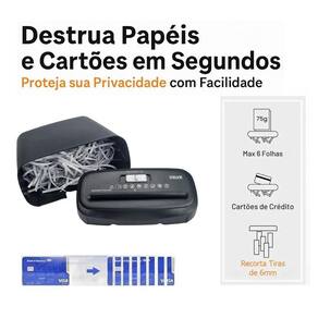 Fragmentadora Papel Cartão 6 Folhas Trituradora Velve Fr1