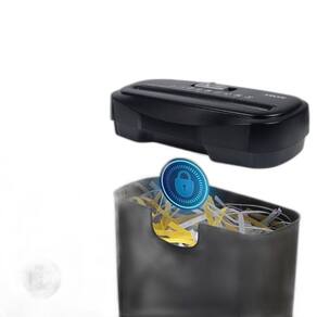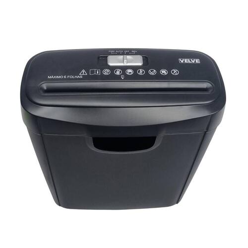 Corte em tiras de 6mm segurança no descarte ; Tritura até 6 folhas por vez; Lixeira de descarte de 9 litros; Fragmenta papel, cartões e grampos metálicos; Não fragmenta CDs ou clips metálicos; Dimensões: 33 x 29 x 15cm; Peso: 1,5kg.