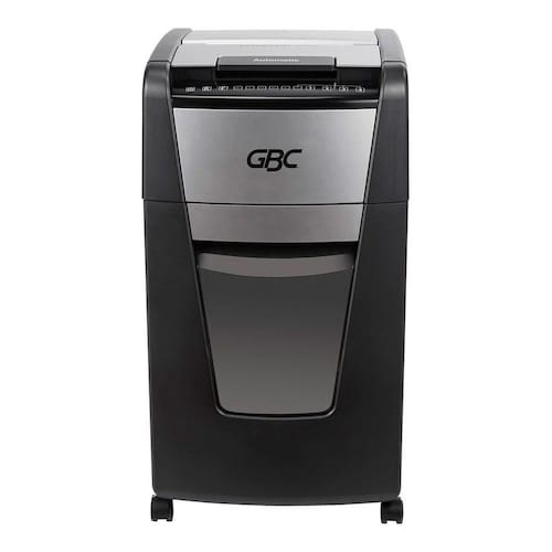 A Fragmentadora Tilibra GBC Auto+ 300x é ideal para utilização compartilhada por até 10 pessoas. Seu design inovador inclui rodas para facilitar a mobilidade e conta com operação silenciosa, sendo perfeita para qualquer ambiente. Seu bloqueio programável por senha de 4 dígitos permite que o usuário se afaste dela sem se preocupar, sabendo que suas informações estarão seguras durante a fragmentação. A 300X possui a tecnologia patenteada Auto+, onde os rolos levam automaticamente o papel para os cortadores sem a intervenção do usuário - permitindo que este tenha mais tempo para outras tarefas importantes. Com manuseio simples e prático, é necessário apenas inserir em um dos compartimentos indicados e pronto. No modo automático Stack-and-Shred (empilhar e triturar), a máquina consegue triturar até 300 folhas no tamanho A4. Já no sistema manual, é permitido inserir 10 por vez. Outra função do modelo é a possibilidade de destruir cartões magnéticos e folhas que contenham clipes ou grampos.