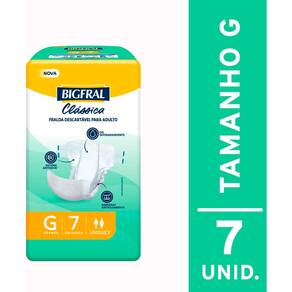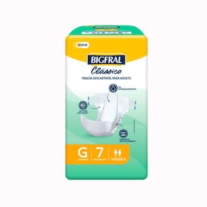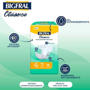 Fralda Descartável Bigfral Clássica - Extra Grande (7 Unidades) A Fralda Descartável Bigfral Clássica foi especialmente desenvolvida para proporcionar conforto e segurança em cada dia. Com tamanho Ext