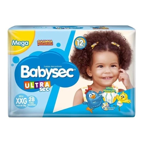 A Fralda Descartável Babysec Ultra Mega XXG pensada exclusivamente no conforto do bebê e na tranquilidade da mãe na prevenção de vazamentos indesejados e irritação da pele. Possui barreira anti vazamentos e camadas com tecnologia de ultra absorção que absorvem rapidamente evitando o contato com a pele para a proteção contra o aparecimento de assaduras e vermelhidões na pele sensível do bebê. A Fralda Descartável Babysec Ultra Mega foi desenvolvida com material de qualidade e macio mantendo a criança confortável e com liberdade de movimento. Proporcionando 12 horas de proteção além de fitas reajustáveis deixando o bebê seguro livre de vazamentos.
