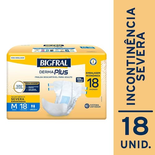 A Bigfral DermaPlus foi desenvolvida para adultos com incontinência urinária severa. Possui o exclusivo sistema de proteção total da pele, com extratos naturais hidratantes que ajudam a prevenir irritações, mantendo a pele protegida e saudável, além de sistema antiodor, trazendo até 10h de proteção e cuidado. Ean: 7896012880203