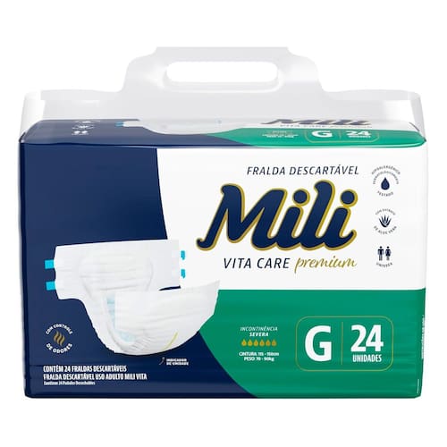 Fraldas Descartáveis Mili Vita Care - Tamanho G Aposte na proteção e no conforto com as Fraldas Descartáveis Mili Vita Care Premium! Com um pacote contendo 24 fraldas elaboradas para incontinência sev Marca: Não Informado