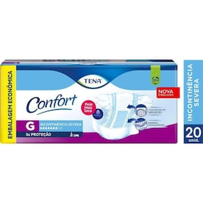 Fralda Geriátrica Tena Confort Tamanho G 20 Unidades Fralda Geriátrica Descartavel TENA Confort de uso diurno/noturno, desenvolvida para garantir proteção com muito conforto, segurança contra vazame Ean: 7896770902605 Ean: 7896770902605