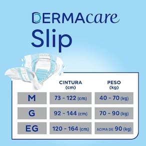 Sistema Dermacare - Confiança e Segurança em 4 passos;? Camada Respirável - Proporciona secagem excepcional através de um núcleo de absorção rápida e excelente retenção;? Sistema MultiFix - Fitas aderentes para reajustar a fixação sempre que necessário para melhor adaptação ao corpo;? Indicador de umidade - Na cor azul, indicando a necessidade de troca do produto;? Barreira antivazamento - Para máxima segurança contra vazamento; controlador de Odor - Sistema que neutraliza o risco de odores indesejáveis;? Cobertura Externa Toque Suave - Similar ao tecido, que proporciona suavidade e menos ruído, com melhor circulação de ar e sensação de frescor, deixando a pele seca, ajudando a evitar a DAI*;? Elástico de Cintura - Para um ajuste firme e confortável; Ajuste perfeito ao corpo - Com elásticos curvos nas pernas que adaptam ao corpo para maior ergonomia, conforto e segurança contra vazamentos; Os componentes são atóxicos e pré testados;? Produto hipoalergênico. Oferece 3x proteção: seco, respirável e seguro.? *DAI: Dermatite Associada à Incontinência Urinária