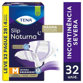 Fralda Geriátrica Tena Slip Noturna M Fralda unissex para usuários com pouca ou nenhuma mobilidade (acamados), indicada para incontinência severa. Proporciona máxima proteção durante toda a noite. Pos