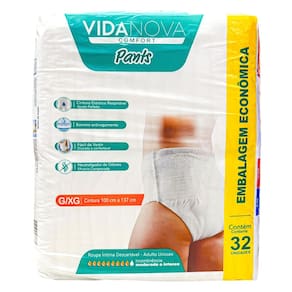 A Roupa Intima Vida Nova Pants Comfort é a solução ideal para quem busca conforto e segurança em momentos de incontinência moderada a severa. Com 32 unidades por embalagem, este modelo foi desenvolvido para proporcionar máxima absorção, garantindo que você se sinta seco e protegido ao longo do dia.