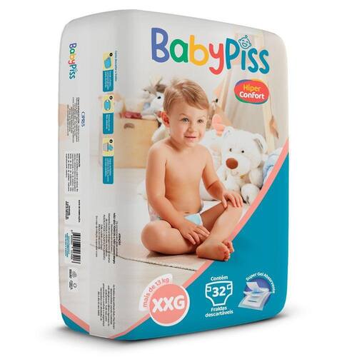 Fralda Infantil Descartável Hiper Confort BabyPiss XXG - 32 Unidades