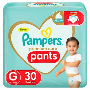 Pampers Premium Care Pants com cintura elástica 360° se adapta ao corpinho do bebê para um ajuste perfeito e agora tem uma nova barreira anti-cocô atrás para proteção contra vazamentos nas costas, par Ean: 7500435145947
