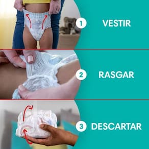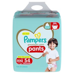 Fralda Infantil Pampers Premium Care Pants Tamanho XXXG Fácil de descartar Enrole e feche a fralda com a fita adesiva atrás Fácil de vestir Como shortinho Fácil de tirar Rasgar os laterais Cintura elástica 360º Se adapta ao corpinho do bebê Suavidade Macio como algodão A proteção mais suave da Pampers Loção hipoalergênica exclusiva Ajuda a prevenir irritações Até 12 horas sequinho* Para noites inteiras de sono sequinho