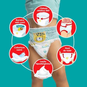 Pampers Pants Ajuste Total com cintura elástica 360° se adapta ao corpinho do bebê para um ajuste perfeito e agora tem uma nova barreira anti-cocô atras para proteção contra vazamentos nas costas, par Ean: 7500435146494