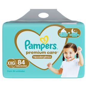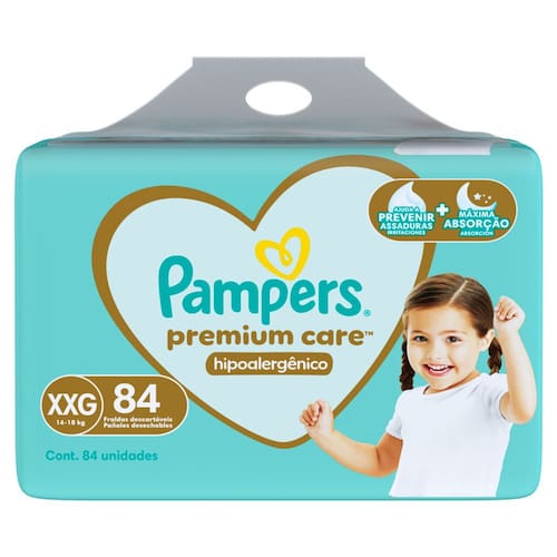 Pampers Premium Care XXG - Hipoalergênico Ofereça ao seu bebê o melhor cuidado com as fraldas Pampers Premium Care na categoria XXG! Com capacidade para crianças de 14 a 18 kg, essas fraldas foram esp
