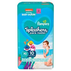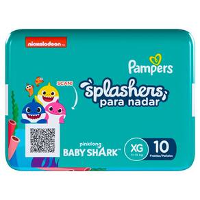 Fraldas Para Nadar Pampers Splashers Baby Shark XG Seu bebê estará pronto para curtir na água com as fraldas de piscina Pampers Splashers! As fraldas Pampers Splashes não incham em contato com a água