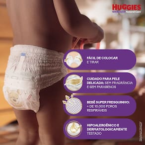 Fralda Roupinha Huggies Natural Care Tamanho G Pacote Mega 24 Unidades Descartáveis A Huggies Fralda Roupinha Natural Care é a escolha ideal para a proteção máxima da pele do seu bebê. Com um cuidado