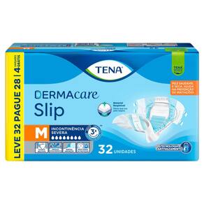 Fralda Geriatrica Tena Dermacare Slip Fralda Tena Dermacare para usuários com pouca ou nenhuma mobilidade (acamados). Possui tecnologia antivazamento, com barreiras protetoras, elásticos nas costas e