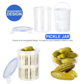 - Seguro para alimentos: feito de plástico de polipropileno seguro para alimentos, este frasco de picles garante a segurança de seus alimentos. O design transparente permite uma fácil identificação do conteúdo. A tampa protetora, selada e sem vazamentos evita eficazmente o odor, mantém os alimentos secos e mantém sua qualidade autêntico. Pode ser utilizado com segurança na geladeira.