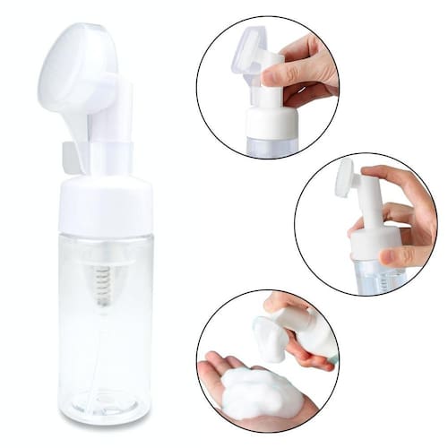 01- Frasco Pump Espumador com Escovinha de Silicone para Limpeza de Pele 120ml