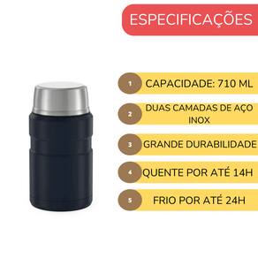 Material: Aço inoxidável de alta qualidade Retenção de Frio: Até 24 horas Retenção de Calor: Até 14 horas Capacidade: 710ml Cor: Azul Escuro Peso: 400g Dimensões (AxLxP): 19cm x 9cm x 9cm