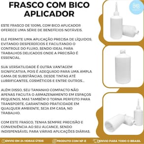 Frasco plástico para Refil de Tinta/lubrificante entre outros de 100 ml Com bico aplicador