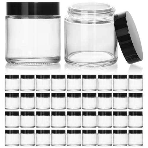 - Qualidade premium: estes frascos de cosméticos de vidro transparente de 118 g combinados com tampas pretas. Feito de vidro grosso de alta qualidade, cada pote é feito para durar. As tampas pretas mate apresentam forros internos para maior conveniência.