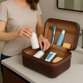 Cosméticos, maquiagens, medicamentos, acessórios pessoais, itens de higiene, câmera, carregadores, objetos delicados e muito mais.