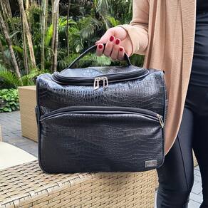 Frasqueira Feminina de Viagem Elegância Preto Croco - Coutre Bolsas - Frasqueira Feminina de Viagem Elegância Preto Croco Alto Padrão - Coutre Bolsas
