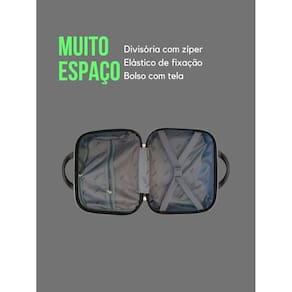 Elaborada em fibra ABS resistente, ela possui: Amplo compartimento interno O zíper possui entrada para uso de cadeado Pezinhos de apoio, na base da frasqueira Elástico nas frasqueiras , para fixação em malas Separador interno fechamento em zíper.
