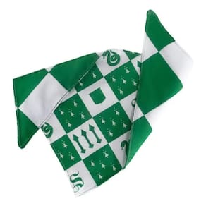 Essa coleção é inspirada na casa de Salazar Sonserina em Hogwarts. A estampa Sonserina contém os principais elementos e características da casa dos líderes, ambiciosos e determinados, seus membros possuem um certo desprezo pelas regras. Representada por uma serpente, a estampa da Sonserina remete toda a sua imponência. Consumer Products.A Bandana Harry Potter - Sonserina foi projetada com muita fofura para complementar o look final do seu pet, além de proporcionar muito estilo e leveza ao passeio