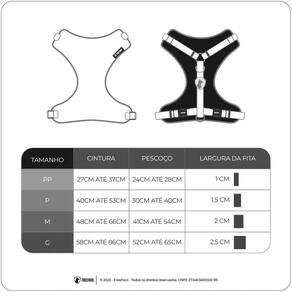 Feito em neoprene, modela-se perfeitamente ao corpo do pet;É o peitoral mais seguro, pois prende-se ao corpo do animal em 2 pontos (pescoço e cintura);Tira em Poliéster super macio e resistente, é a mesma utilizada em cintos de segurança;Tecnologia inTransfer® garante a estampa com cores mais vivas;100% ajustável ao corpo do animal (verifique a tabela e tamanhos);TAMANHO GCintura - 58cm até 86cmPescoço - 52cm até 65cm Largura da fita 2,5cm