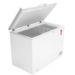 Mantenha seus alimentos sempre conservados no Freezer Horizontal Midea 295L. Ele traz quatro funcoes para resfriar, conservar e congelar, atraves do termostato externo com 9 opcoes de temperatura. Alem disso, a funcao Freezer + possibilita resfriar os alimentos de forma mais rapida. Pratico, possui abertura de porta superior com puxador ergonomico e rodizios que ajudam no transporte; seu dreno frontal para escoamento da agua do degelo facilita na hora da limpeza. Tambem acompanha um cesto aramado para organizacao dos alimentos e fechadura com chave. Nao agride a camada de Ozonio, pois e livre de CFC. Temperatura de Operacao Freezer: minimo de -28C e maximo de -12C. Temperatura de operacao do conservador/refrigerador: minimo de 0C e maximo de 10C.
