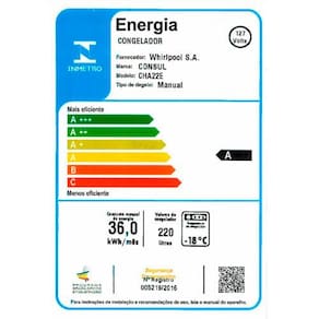Este Freezer Horizontal Consul com capacidade de 220 litros apresenta, ao mesmo tempo, alto rendimento e baixo consumo de energia (35,22 kWh) com dois modos de operação: congelamento e refrigeração.