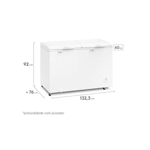 Características Classificação Energética ?A?: menor consumo de energia elétrica para maior economia. Cesto aramado: flexibilidade e melhor organização do espaço interno. Turbo Freezer: resfriamento mais rápido, indicado para ocasiões como festas ou quando há a necessidade de congelar os alimentos de forma acelerada. Dupla Função e painel frontal intuitivo: controle de temperatura para função freezer ou refrigerador com maior facilidade no acionamento de cada uma delas. Fechadura de segurança: permite o travamento do freezer para um armazenamento seguro. Pintura resistente: mais durável, confere melhor aparência. Rodas 360° e puxador ergonômico: mais facilidade para abrir e movimentar o Freezer. Dreno frontal: praticidade na hora de descongelar. A água do degelo escoa pelo dreno sem precisar movimentar o Freezer. Metatag: O Freezer Horizontal Freezer 400L 2 portas da Electrolux -H440- é prático e simples, oferecendo maior economia de energia elétrica e espaço interno organizado. Tecnologia: Cycle Defrost Temperatura: 7°C a -18°C