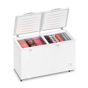 Características Temperatura: 7°C a -18°C Tipo de Degelo:Manual Classificação Energética A: menor consumo de energia elétrica para maior economia. Cesto aramado: flexibilidade e melhor organização do espaço interno. Turbo Freezer: resfriamento mais rápido, indicado para ocasiões como festas ou quando há a necessidade de congelar os alimentos de forma acelerada. Dupla Função e painel frontal intuitivo: controle de temperatura para função freezer ou refrigerador com maior facilidade no acionamento de cada uma delas. Gechadura de segurança: permite o travamento do freezer para um armazenamento seguro. Pintura resistente: mais durável, confere melhor aparência. Rodas 360° e puxador ergonômico: mais facilidade para abrir e movimentar o Freezer. Dreno frontal: praticidade na hora de descongelar. A água do degelo escoa pelo dreno sem precisar movimentar o Freezer.
