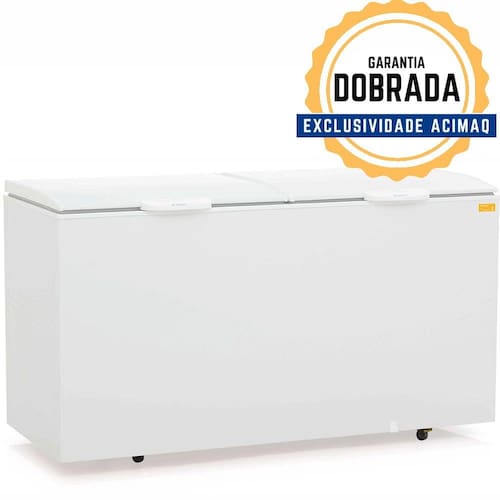 Conservação de produtos congelados Temperatura: -16º a -20ºC Refrigeração: Estática com Serpentina de Cobre Controle de Temperatura: Termostato Skin condenser: Excelente dissipador de calor com baixíssimo nível de ruído e significativa redução no consumo de energia Degelo: Manual 2 Tampas: Cegas, basculantes com puxadores Dreno frontal com tampa Revestimento interno e externo em Aço pré-pintado branco Gabinete com rodízios
