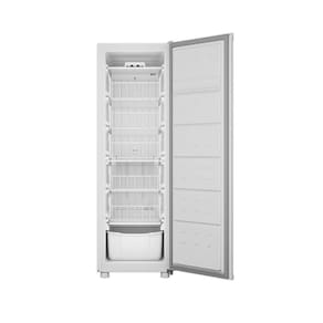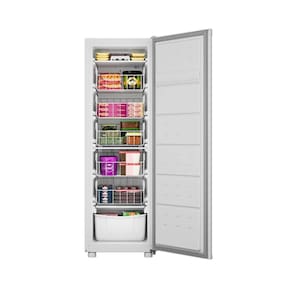 Outro diferencial importante está nos pés reguláveis, que facilitam a instalação em qualquer ambiente, bastando ajustá-los até encostar no chão para garantir estabilidade. O freezer também utiliza gás ecológico, contribuindo para a preservação do meio ambiente e da camada de ozônio. Combinando eficiência, organização inteligente e facilidade de uso, este modelo é perfeito para quem deseja mais controle e praticidade no armazenamento de alimentos.