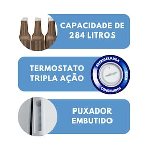 O VCET 284 Tripla Ação é ideal para a conservação de produtos congelados com eficiência e praticidade. Este freezer possui refrigeração estática e uma barra de torção com exclusivo sistema stop inteligente e fechamento automático da porta.