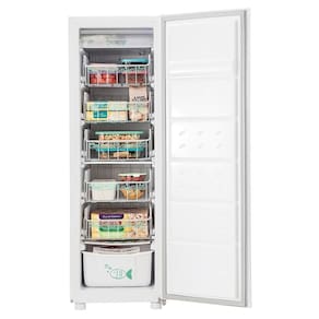 Compartimentos especiaisMais espaço para congelados. O Freezer Vertical Consul de 142 litros é perfeito para quem busca um espaço extra para guardar os congelados. Compacto, tem um super espaço interno e cabe perfeitamente na sua cozinha. Ele também conta com compartimentos especiais para conservar os seus alimentos por mais tempo.