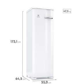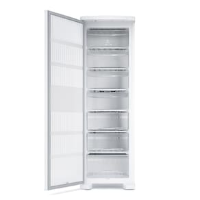 O Freezer Vertical Electrolux Cycle Defrost Uma Porta (FE27) é um refrigerador de Grande Capacidade, com espaço interno para até 234l, que preserva seus alimentos, bebidas e embalagens preferidas de modo econômico com o baixo consumo energético da Classificação A, menor da categoria.