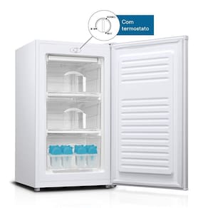 Apesar do tamanho compacto, este freezer oferece uma distribuição interna inteligente que permite armazenar uma grande quantidade de produtos de forma organizada e acessível, otimizando o espaço disponível.