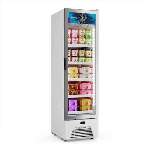 Apresentamos o VF28 Optima Branca-337L, a escolha perfeita para quem busca desempenho e estilo em um só equipamento. Com um design moderno na cor branca, este freezer vertical oferece capacidade de 337 litros bruto, ideal para armazenar uma ampla variedade de sorvetes e produtos congelados. O sistema Frost Free evita o acúmulo de gelo, garantindo praticidade no uso e facilitando a manutenção. Além disso, sua estrutura slim permite otimizar o espaço, sendo uma excelente opção para estabelecimentos comerciais que precisam de eficiência sem comprometer a estética.