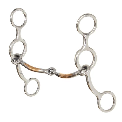 Freio modelo Bolinha da nossa marca exclusiva Bronc-Steel, fabricado com hastes de aço inox articuladas e bocal de ferro liso com banho em cobre articulado.