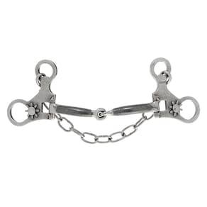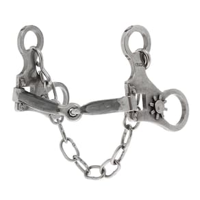 Freio Bridão Vinagre Mangalarga, fabricado com hastes articuladas de aço inox e bocal articulado de ferro liso. Acompanha barbela de corrente em aço inox.