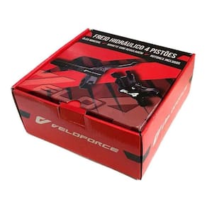 Freio disco hidraulic 4 pistoes par Sistema de freio hidráulico de 4 pistões para bicicletas de mtb e downhill Design leve Acabamento de alta qualidade Pistões auto-ajustáveis de 16 mm Alavanca de 2 dedos Ajuste de alcance da alavanca para se adequar a todos os tamanhos de mão Padrão internacional e ajuste post mount Fluido de óleo mineral para proteger o meio ambiente. Compatibilidade de bicicletas: bicicletas elétricas, mtb, híbridas Peso - 240g Marca : veloforce